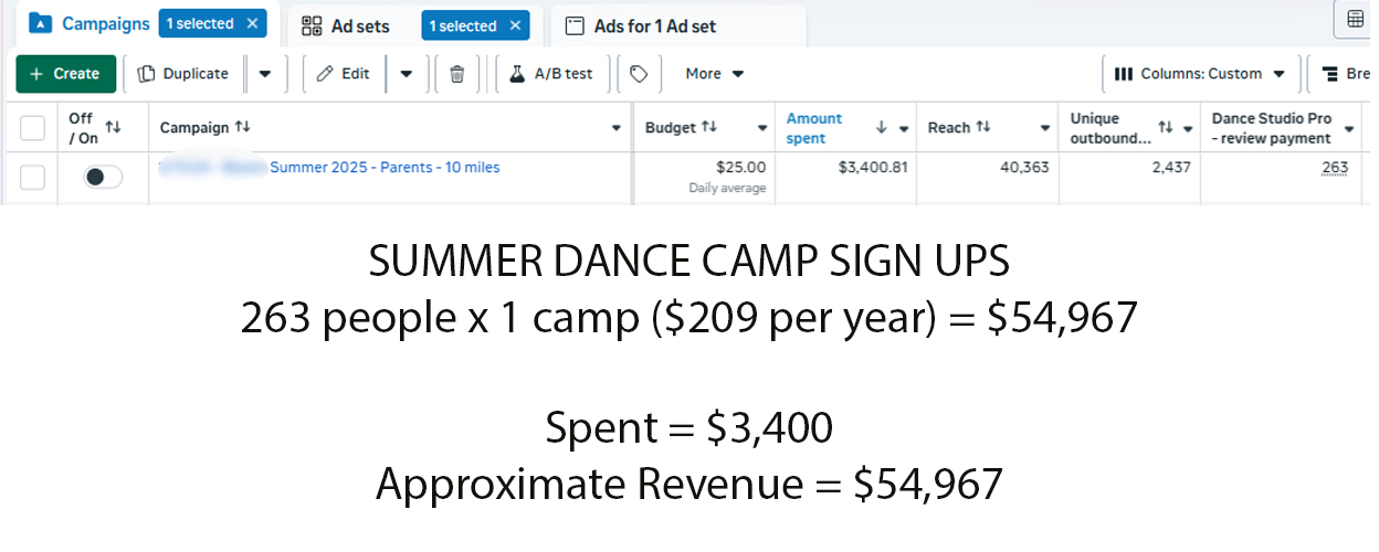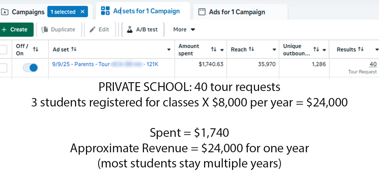 13.8x return on ad spend (based on first-year tuition alone)