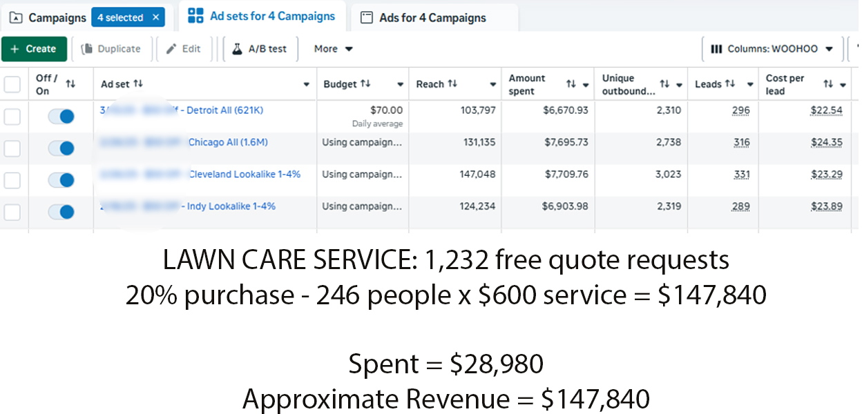 Generated $147,840 in revenue (20% average conversion to paid service at $600 per job)