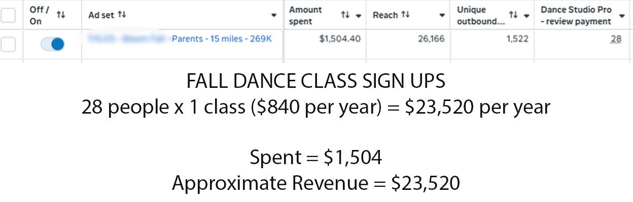 3 new families enrolled = $8,000 per student/year in tuition